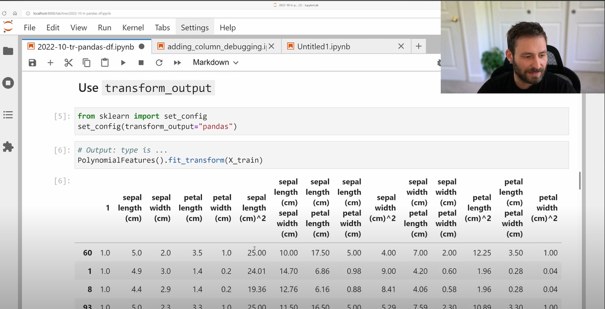Starting with the next release of scikit-learn (v1.2), pandas dataframe output will be available for all sklearn transformers! This will make running pipelines on dataframes much easier and provide better ways to track feature names. Previously, mapping a transformed output back into columns would be cumbersome as it might not be a one-to-one mapping in cases of complex preprocessing (e.g., polynomial features).